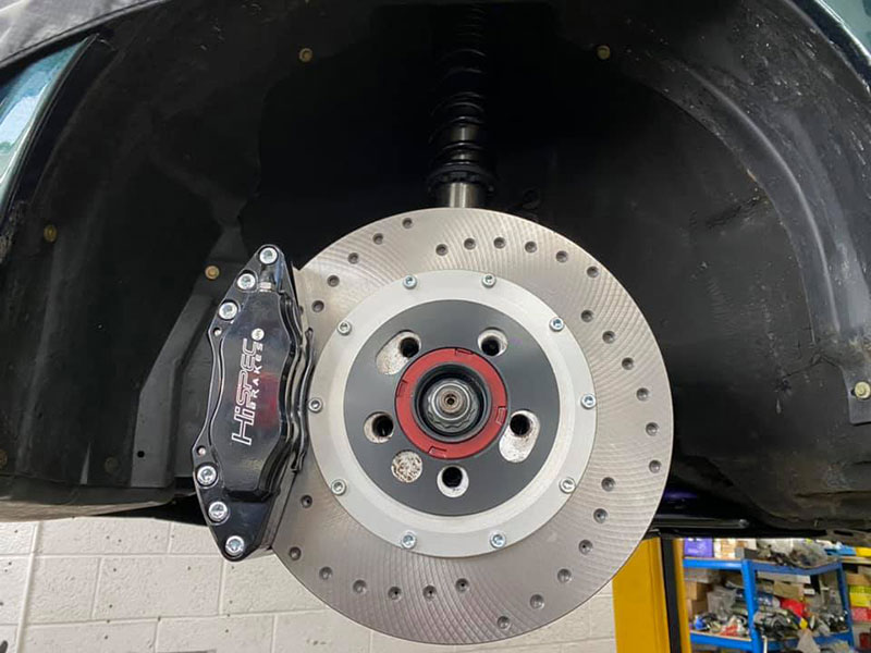 Our focus then turned to the engine and clutch works. New timing chains and tensioners were fitted and as a precaution the rear main oil seal was changed, while it was exposed. The sump was replaced due to grounding damage on the unit fitted and a new gasket with sealant to endure no oil leaks. The sump oil pick up was checked and cleaned at this point. A Sachs three piece clutch was also fitted and this was mounted onto a JMR lightened and balanced flywheel. The rebuilt and Quaife LSD equipped gearbox was refitted. The starter motor, that we had previously refurbed, was fitted, as too was a new clutch slave cylinder and fluid supply hose / pipe, the last of our new old stock. The engine cooling system thermostat housing was noted to have the typical breakdown in the plastic housing, where the “O” ring seal locates. Furthermore, similar breakdown was seen at the water transfer pipe from the pump. Both of these assemblies were replaced with new OEM parts, yes hard to believe, actual OEM parts availability! The clutch and brakes were bled through with fresh fluid and both clutch and brake systems pressure tested. As a little aside, whilst the inlet manifold was off, for fitting of new chains, we chose to blast clean it and finish it with a coat of 2 pack matt.