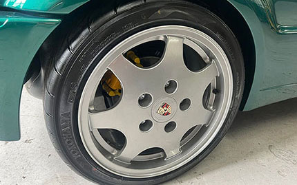 Back at the workshop, post repaint, the long task of building the Corrado from bare shell began. A rolling shell was established, installing all freshly powder coated running gear, rebuilt with all new bushes and re-plated hardware. KW Classic Variant 3 coilover suspension was installed, along with four pot front brake upgrade and improved rear brake callipers. The customer had chosen Porsche DT90 16” wheels and these were fitted to the VW hubs with KW ST hubcentric spacers and studs in place of wheel bolts.